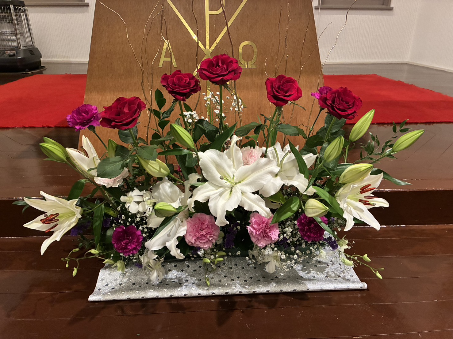 カトリック三田教会は、パリミッション会の、故アルフレッド・メルシェ神父を、主任司祭として1952年5月11日、現在の地に献堂されました。