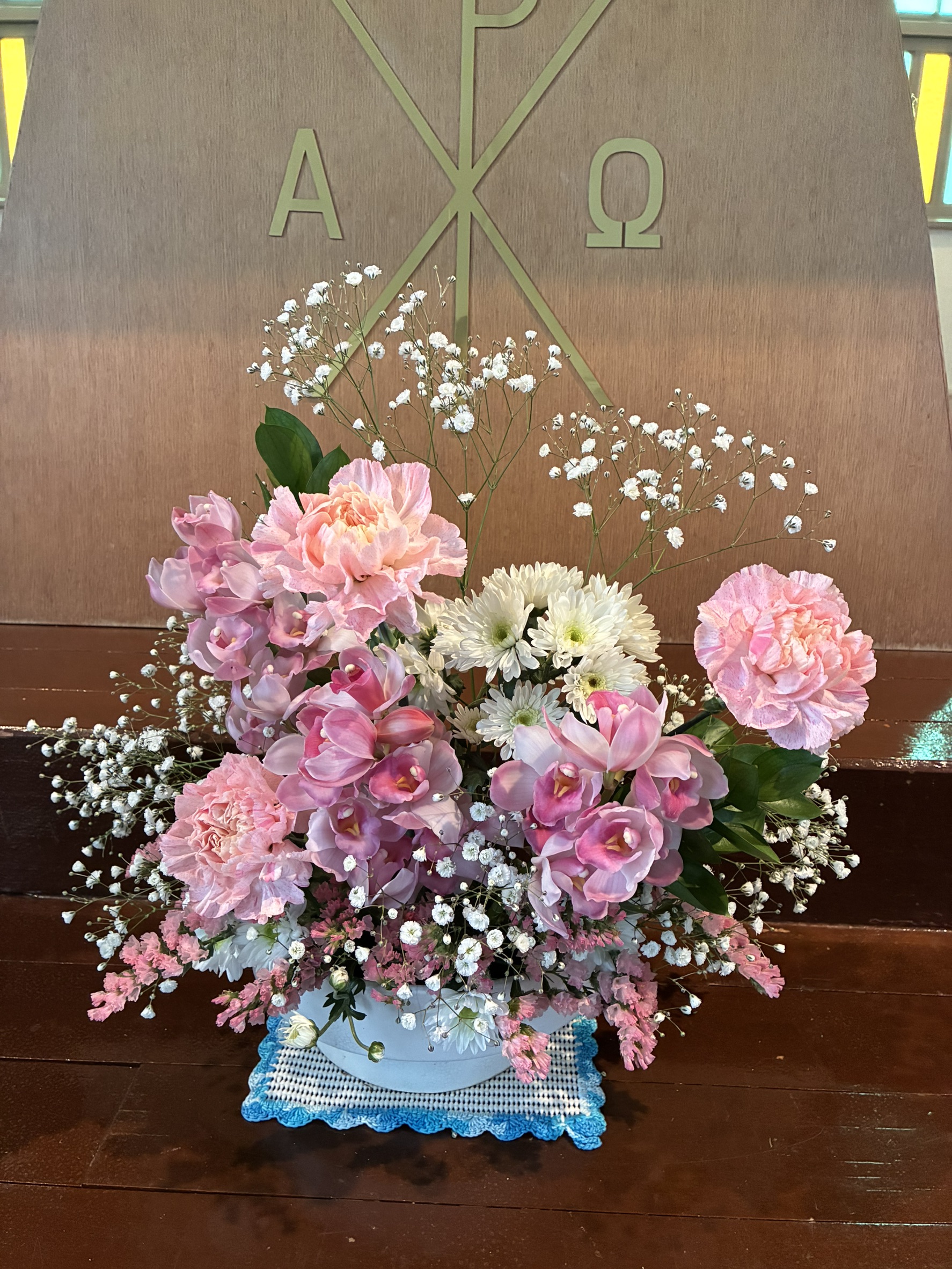 カトリック三田教会は、パリミッション会の、故アルフレッド・メルシェ神父を、主任司祭として1952年5月11日、現在の地に献堂されました。